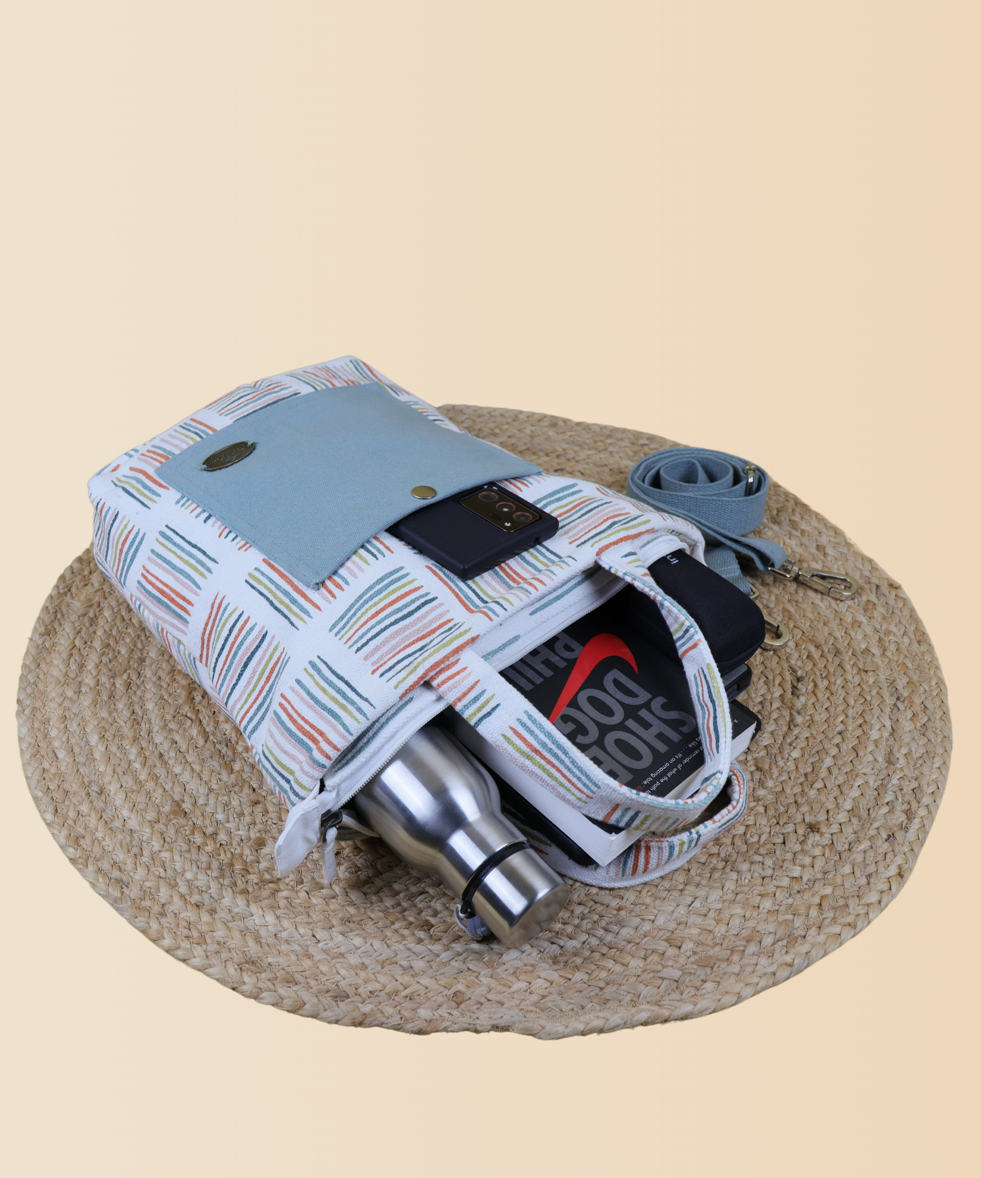 This adorable cotton crossbody tote is designed for everyday convenience and style. Featuring an adjustable shoulder strap for a customised fit, it offers a secure zip closure with an inside zipper and slip pockets for easy storage of your essentials. Perfect for on-the-go functionality while maintaining a sleek, casual look.