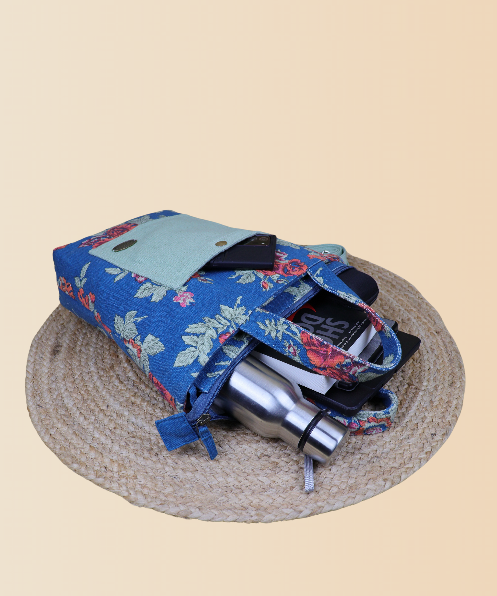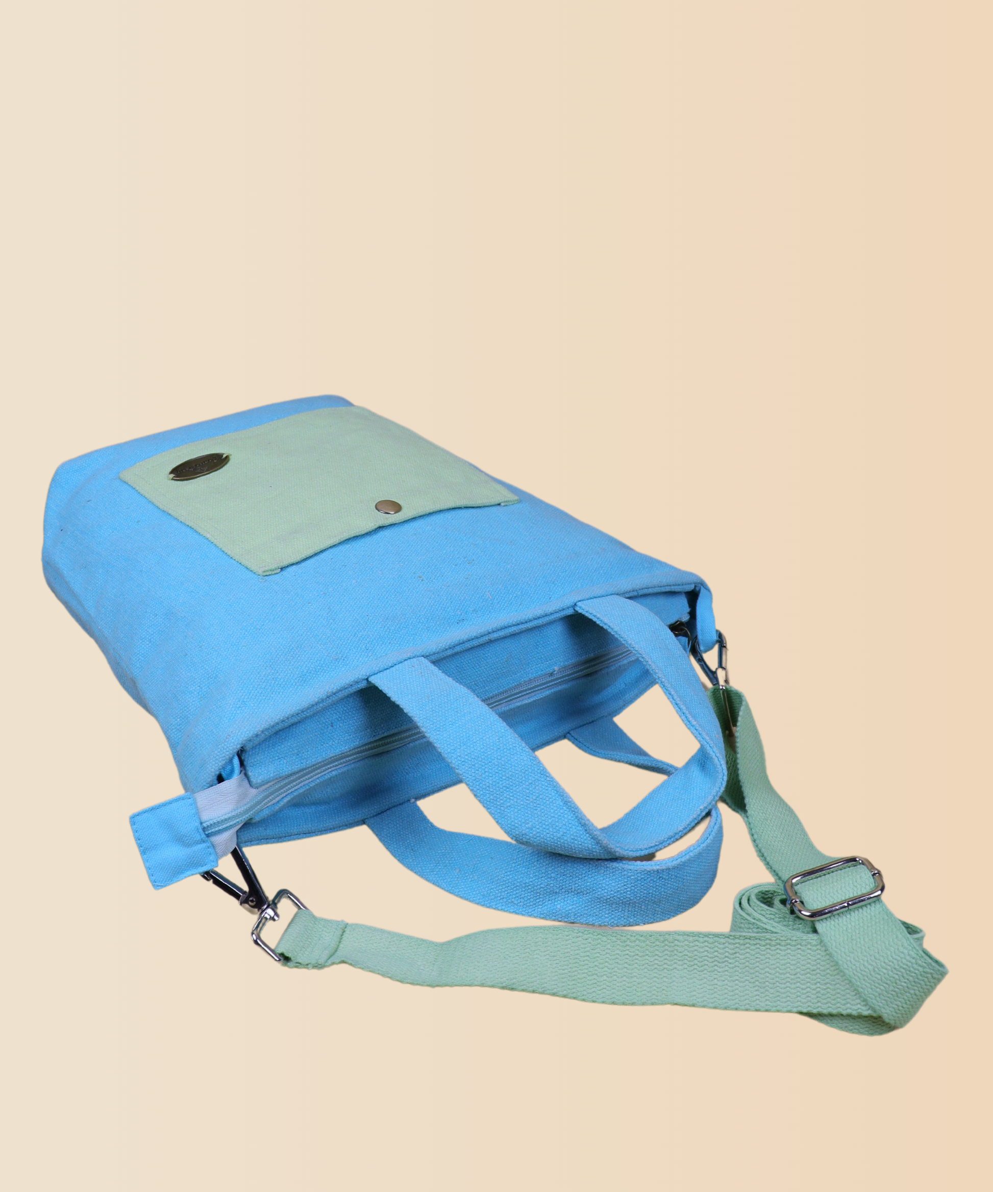•    Pockets- 3 (One zipper pocket and one slip pocket inside, along with one external slip pocket with button closure.)